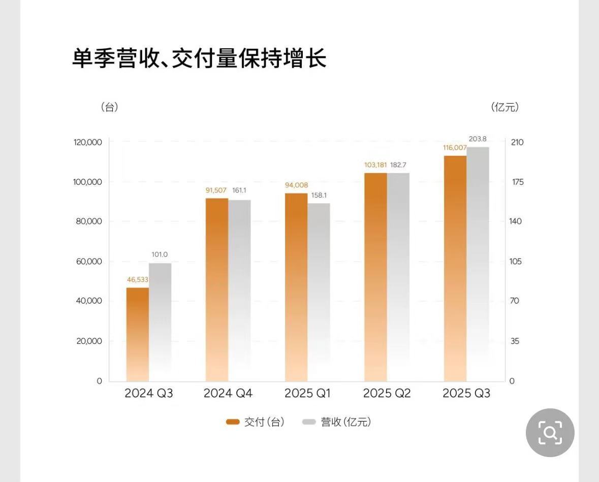 11月17日,小鹏汽车发布2025年第三季度财报,2025年第三季度营收、交付量、毛利率及现金储备全面新高。其中便捷股票配资,总营收创历史新高,达203.8亿元,同比增长101.8%,环比增长11.5%,第三季度交付量创历史新高,达116007台,同比增长149.3%,环比增长12.4%。